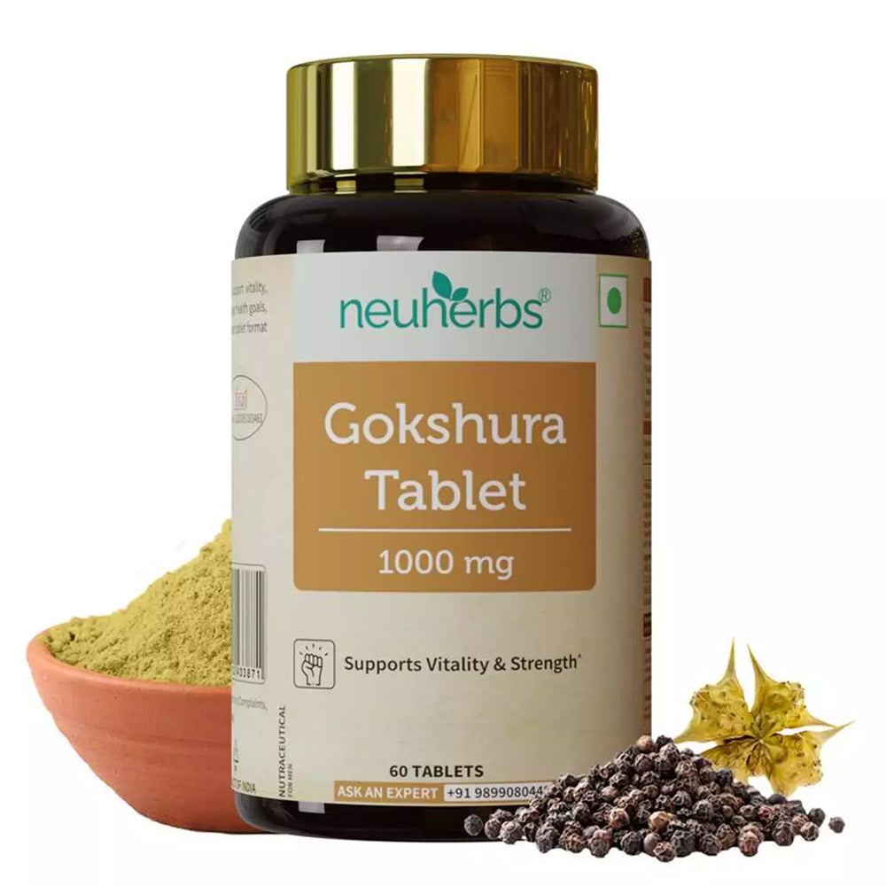 The Neuherbs Gokshura Tablet 1000mg is a natural herbal supplement formulated to support men’s vitality, stamina, and urinary health. Made from pure Tribulus Terrestris (Gokshura) extract, it helps enhance strength, muscle performance, and energy levels naturally — without synthetic additives or preservatives.