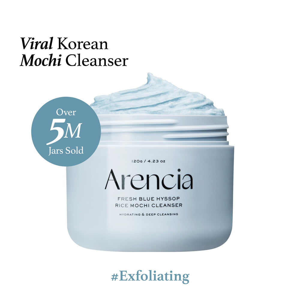 The Arencia Fresh Blue Hyssop Rice Mochi Cleanser is a unique soft-mochi textured facial cleanser that deeply cleanses, brightens, and revitalizes the skin. Infused with blue hyssop and rice extract, it gently removes impurities, excess oil, and makeup residue while maintaining the skin’s natural moisture barrier. The rich, elastic texture transforms into a creamy lather that leaves your skin smooth, supple, and refreshed.