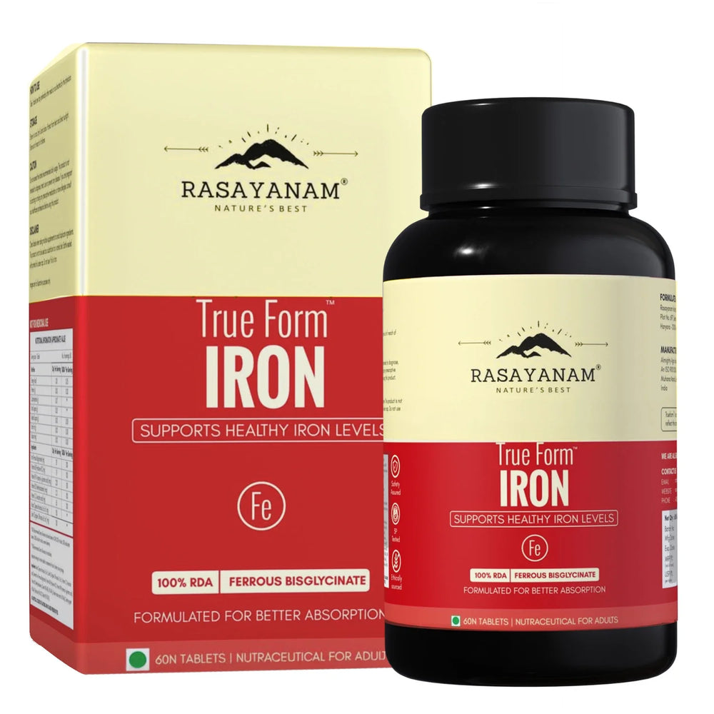 Blended with supportive nutrients, Rasayanam True Form Iron helps combat iron deficiency, reduce fatigue, and support oxygen transport in the body. Free from unnecessary additives, it is ideal for daily use to promote sustained energy, strength, and long-term wellness.